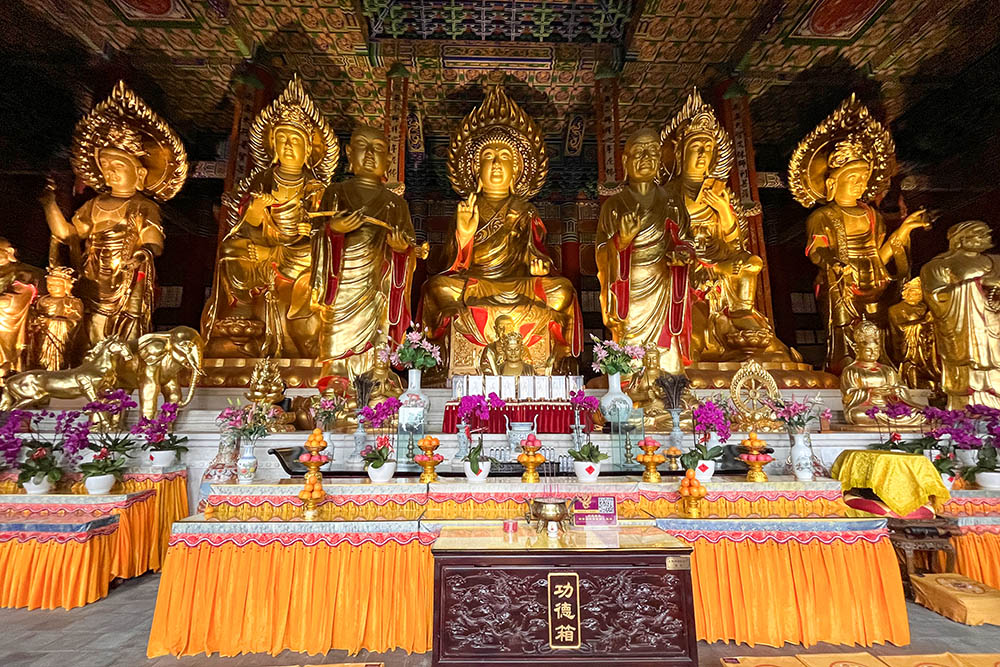 Ok, das sind die wichtigsten Statuen im Tempel. Die einzelnen Namen der dargestellten Buddhas und anderer wichtiger Personen haben wir nicht richtig mitgekriegt. Für die Schlaumeier: Wie war nochmal der Name der Mona Lisa der Bai? Eben.