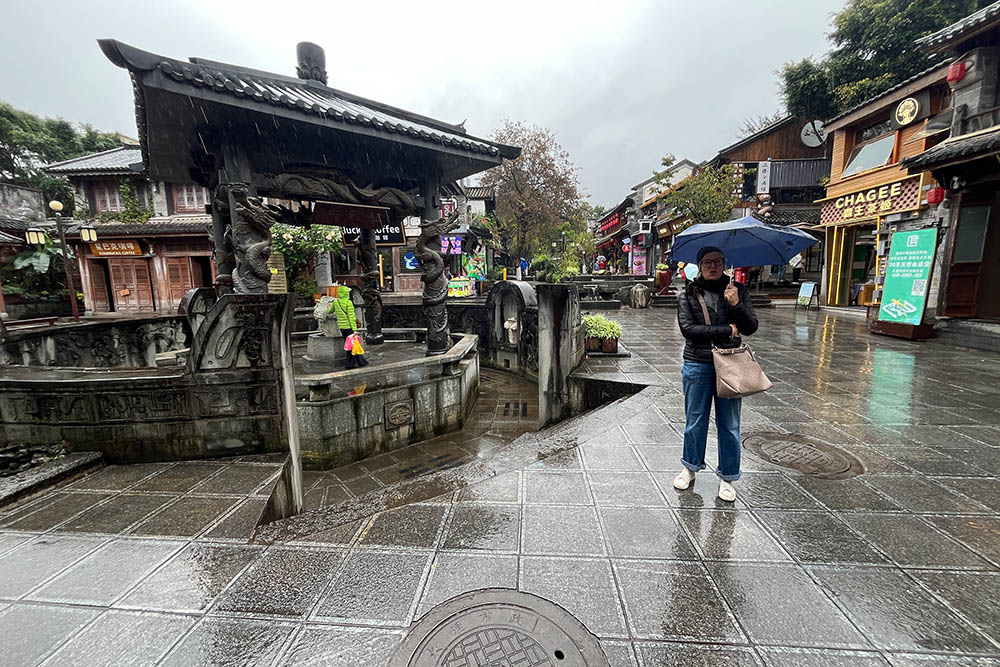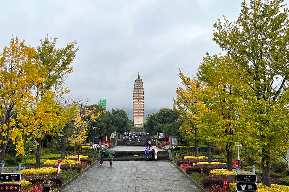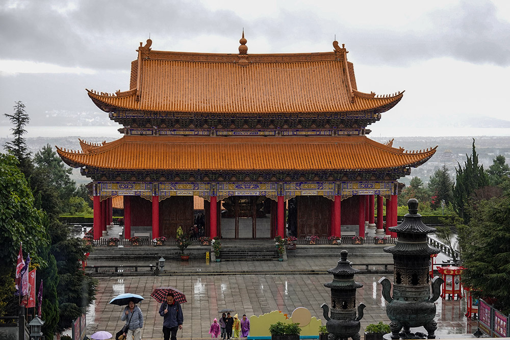 Dann wurde der Chongsheng Tempel besichtigt, der hinter den drei größten Pagoden liegt. Es hat mittlerweile in Strömen geregnet. Leider war der Tempel ein Nachbau aus dem Jahr 2005 oder so in etwa. Vorher wurde er und viele Nebengebäude durch Erdbeben und Krieg zerstört. Komisch, wenn man weiß, dass das Gebäude neu ist, hat es irgendwie seinen Reiz für uns Touristen verloren.