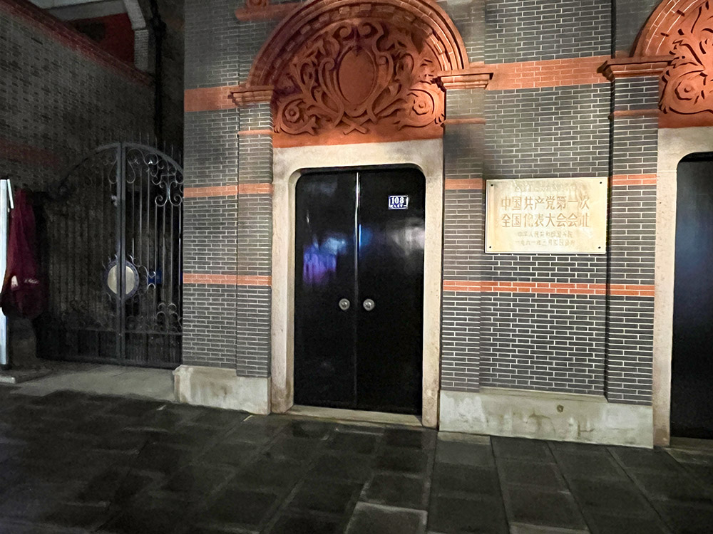 …ausgerechnet hier, neben dem damals mondänsten Viertel der Stadt und hinter dieser Tür wurde am 23.7.1921 die Kommunistische Partei Chinas gegründet. Heute noch der größte und wichtigste Stern in der Nationalfahne neben den vier kleinen Sternen für die Bauern, die Arbeiter, die Intellektuellen und das Militär.