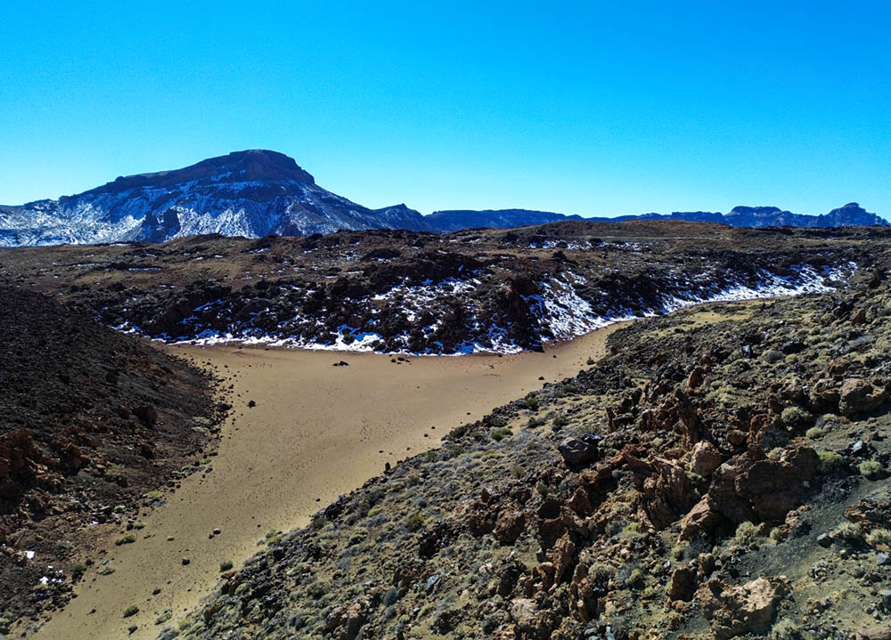 Ich also meine Wanderbotten an, Daunenjacke drüber bei 2 Grad aber strahlendem Sonnenschein auf 2200 Metern und los ging es Richtung Basisstation der Seilbahn zum Teide. Von Minas Tirit, äh nein, da verwechsle ich was, Minas de San Jose (obwohl, die Landschaft könnte auch aus Herr der Ringe sein) sieben Kilometer hin und sieben zurück. Sozusagen ein kleiner Konditionstest, denn es ging immer mal wieder 200 Meter runter und dann 200 wieder hoch. Bestimmt 5 mal.