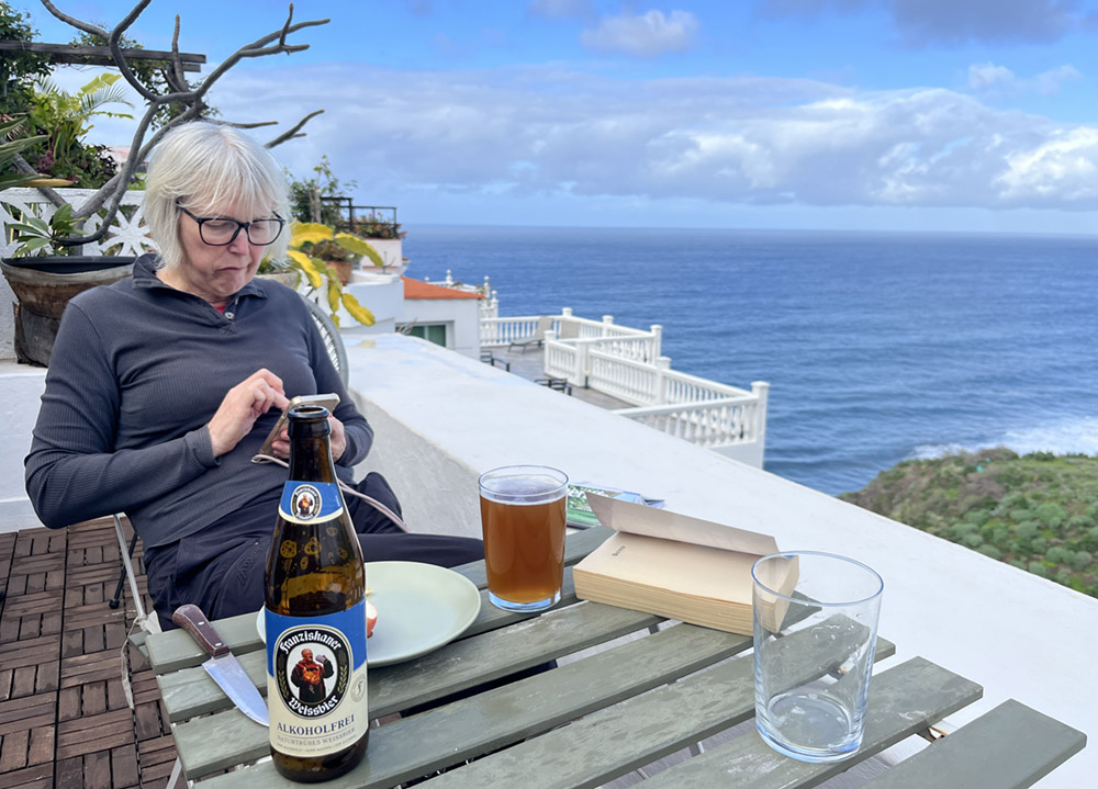 Sylke ist zu faul einen Blogbeitrag zu schreiben. Ihr Argument: Heute ist Samstag, da habe ich frei. Jetzt sitzt sie Apfel mampfend und Weissbier trinkend mir gegenüber und bedient ihr elektronisches Körperteil, ihr iPhone.