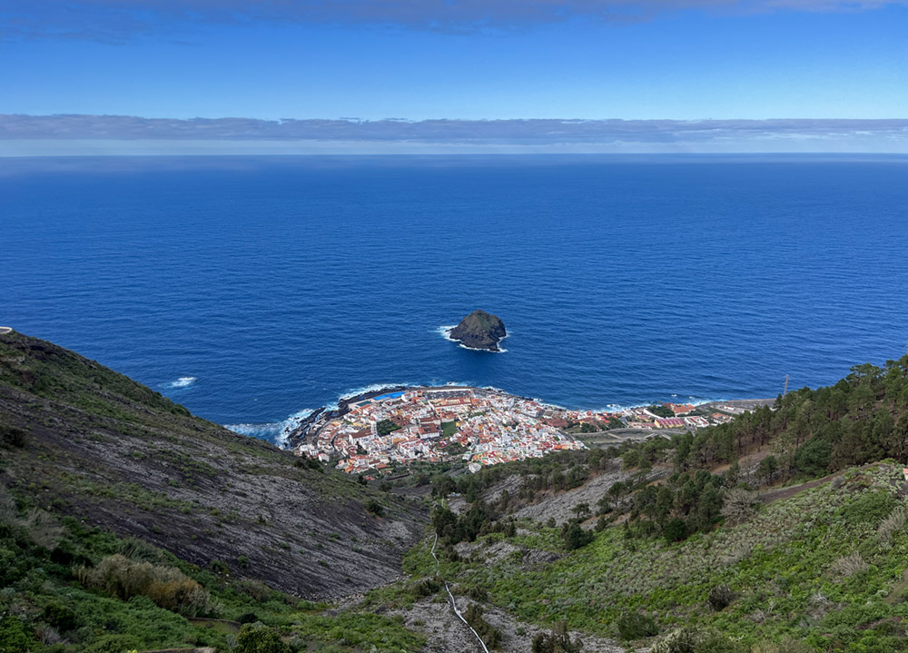 Ganz oben angekommen konnte man deutlich den Weg der Lava Richtung dorf sehen. Übrigens hat das Städtchen seinen Namen von dem Felsen, der davor im Meer liegt: Garachico.