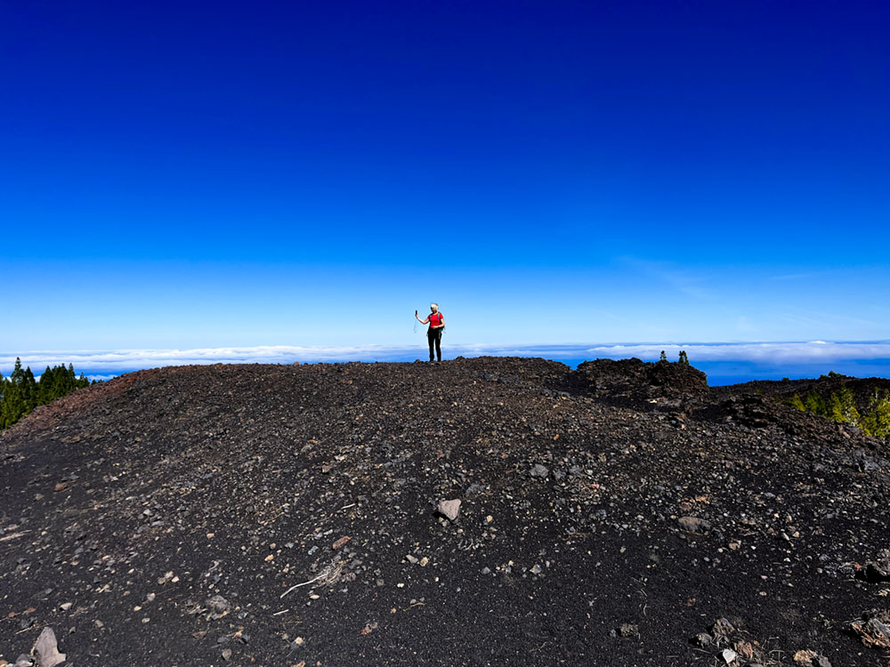 Gleich am Anfang der Wanderung hatten wir das Gefühl, die richtige Wahl getroffen zu haben. Strahlend blauer Himmel und ein sehr präsenter Teide. Das hat natürlich Sylke zu diversen Selfies rausgefordert, siehe Beitragsbild.