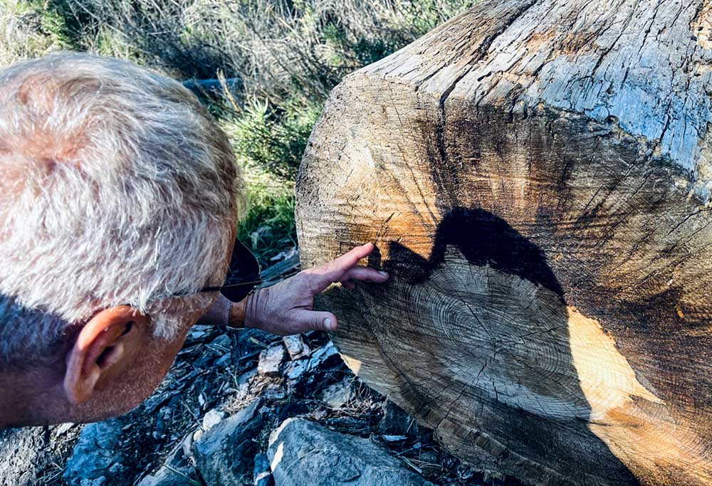Da lag die Vermutung nahe dass sie, trotz ihrer Größe, nicht älter als 115 Jahre sein können. Denn der Vulkan hat ja 1909 hier oben alles kaputt gemacht. Und tatsächlich: 110 Jahresringe bei einer, die erst kürzlich gefällt worden war.