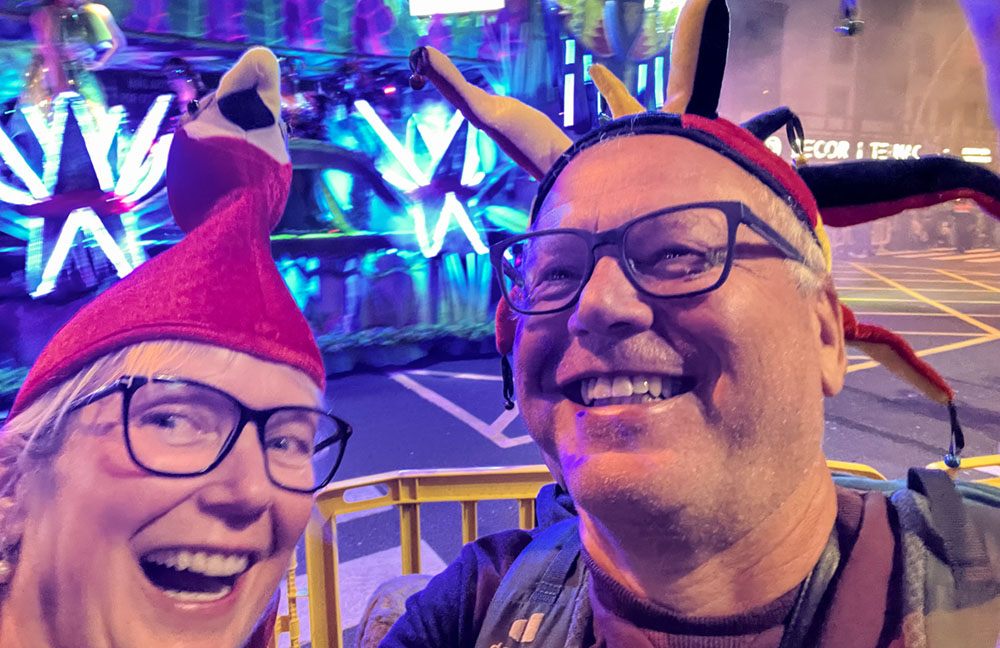 Drei Stunden Kostüm-, Samba-, Trommel-Wahnsinn, gezwungen lächelnde Kinder in aberwitzigen Klamotten, viele Männer in lächerlichen Frauenkostümen und einige Teilnehmende, die besser auf hautenge Verkleidung verzichtet hätten. Das Ganze zog drei Stunden lang an uns vorbei, ohne Unterbrechung. Sylke fands toll und lustig und das war die Hauptsache.